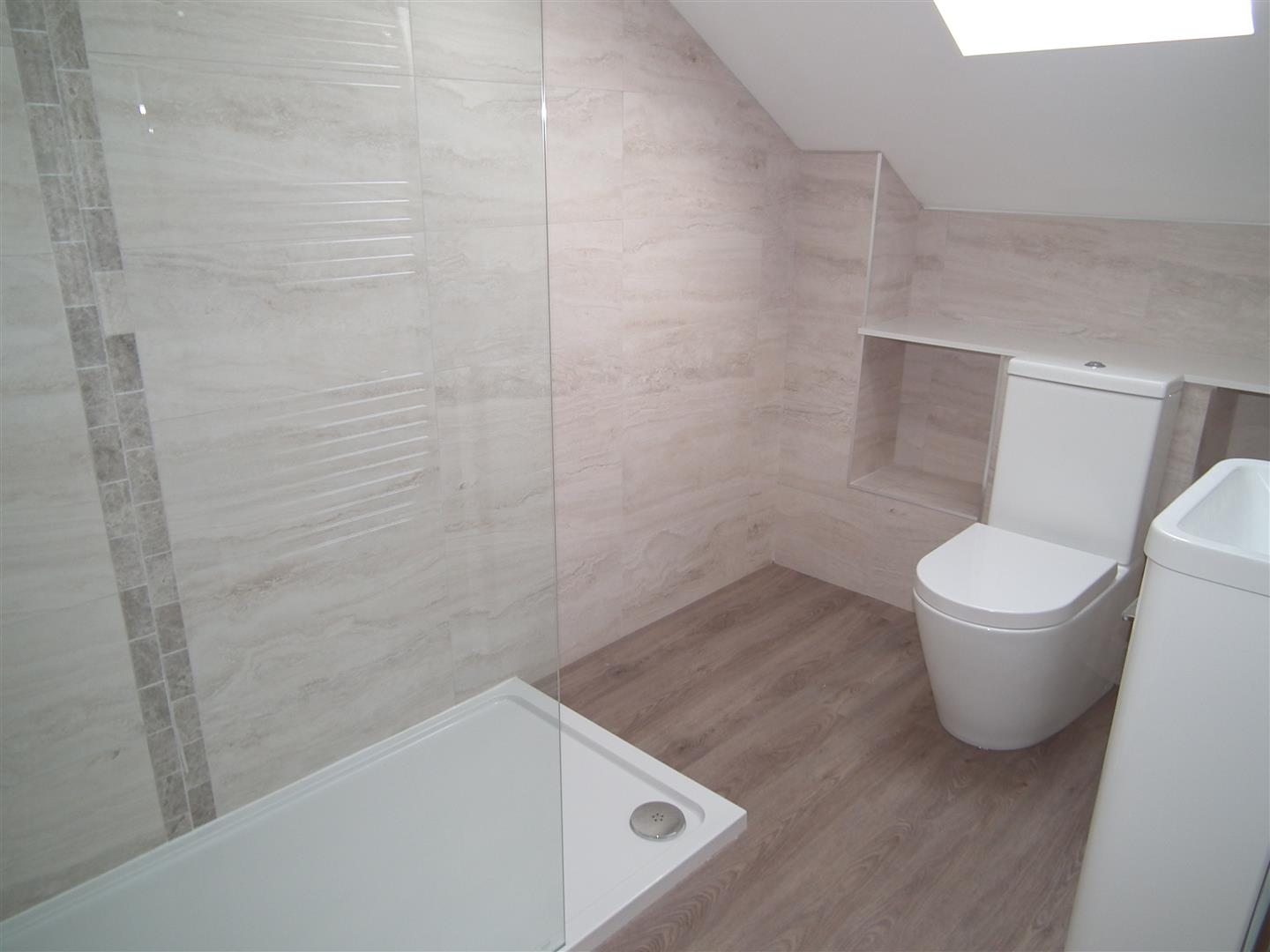 To the second floor is a large master bedroom with a door leading to the en suite which has a double size shower, vanity wash hand basin and wc.