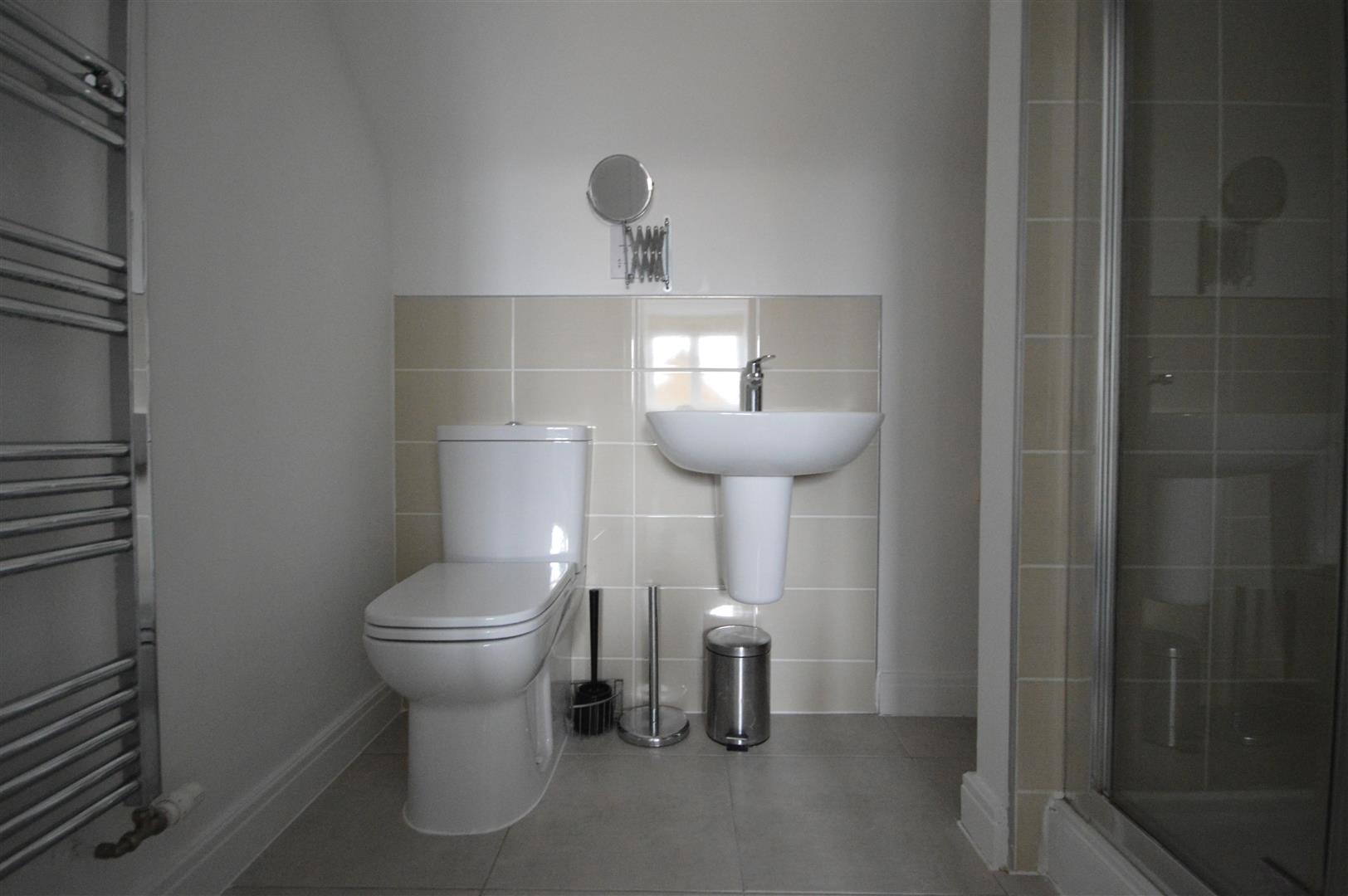 Stairs from the entrance hall lead to a landing with a storage cupboard housing the boiler and access to the master bedroom. The master bedroom features a dormer window, mirror-fronted fitted wardrobes, and an en suite with shower, WC, basin, heated towel rail, and tiled floor.