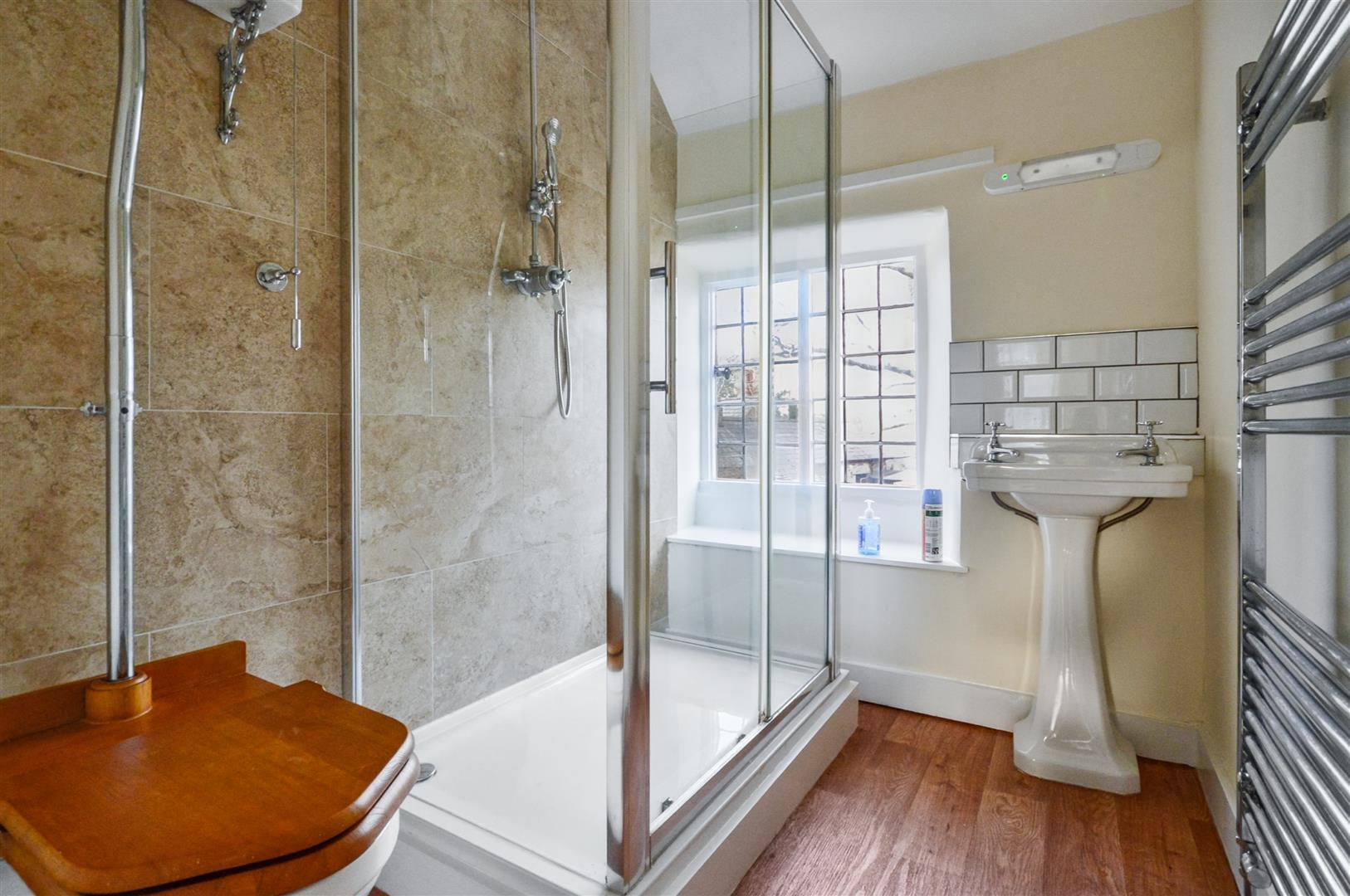 The living room has lots of natural light and boasts a window seat and wood burner. Upstairs is a spacious landing which provides access to three generous bedrooms, two which have feature fireplaces and window seats. The shower room has a traditional high level cistern, Victorian hand basin and heated towel rail. To the rear of the property is a garden with two outbuildings.