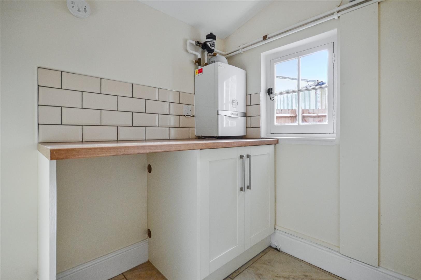 Upon entering the property, you are greeted by an impressive entrance hall that gives access to the kitchen, lounge, stairs to first floor, cellar and rear garden. The kitchen has a tiled floor, cream cabinets, wood effect worktops, ceramic hob, electric oven and space for a washing machine. There is also an open fireplace and a feature bread oven that adds charm and character to the property. The kitchen leads to a utility room which houses additional cupboards and worktop with space for a tumble dryer.