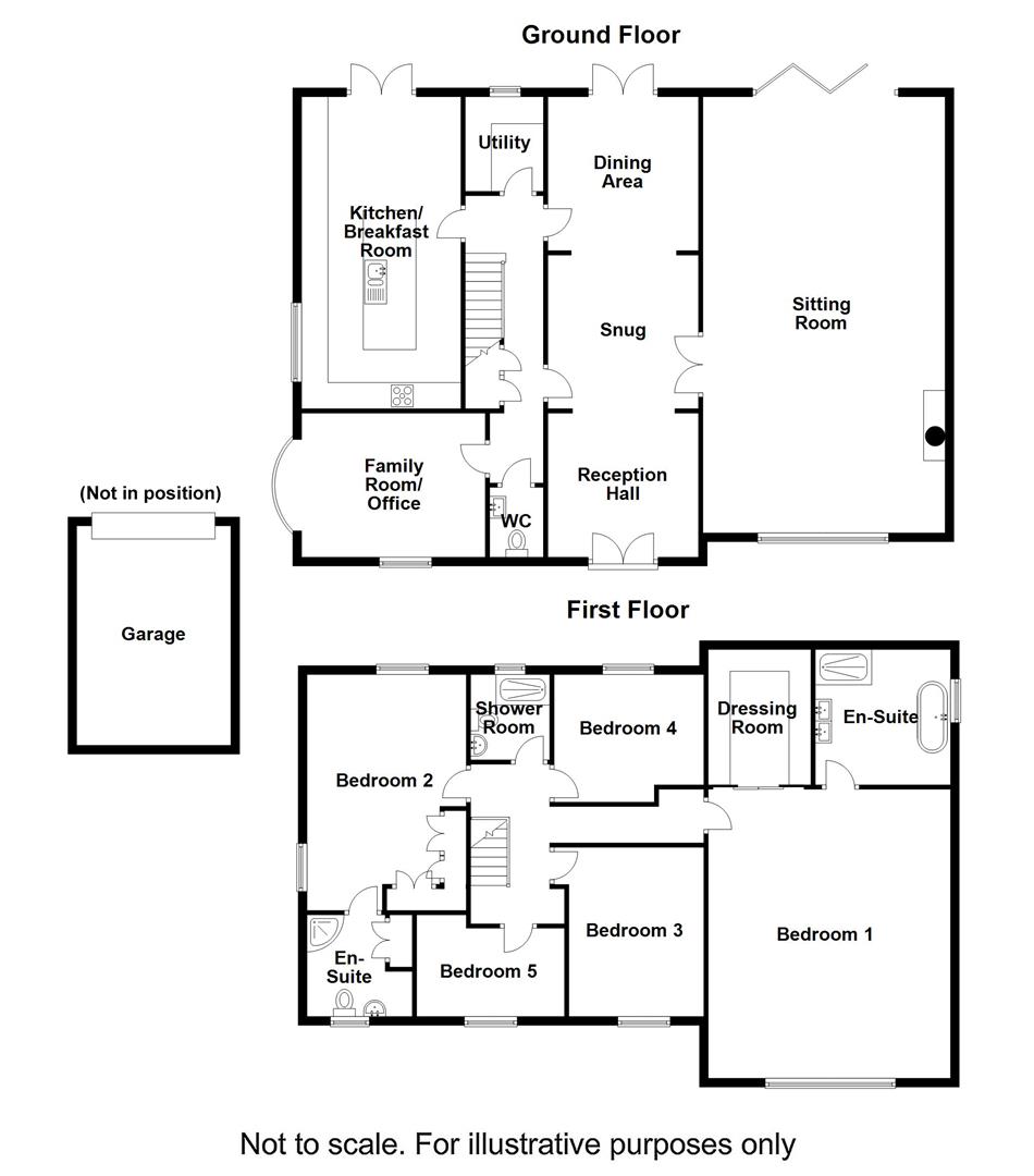 These rooms are connected to provide extended dining space if required and there are French doors opening to the rear garden and further doors giving access to the staircase hall.