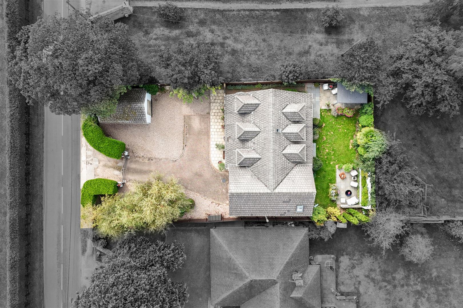 The front garden is largely landscaped containing a variety of mature Silver Birch trees and there are pedestrian gates either side of the house leading to the rear garden.