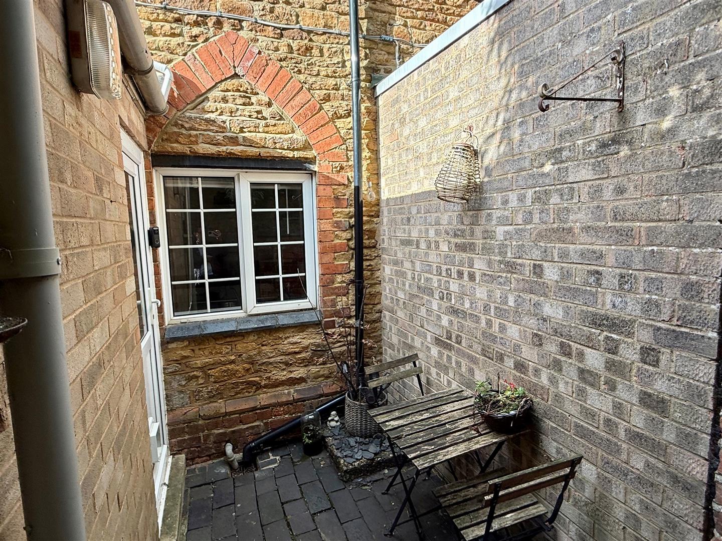 There is a small but private court yard with a gate leading to a shared path which leads out onto Pound Lane and also to a useful outside store.