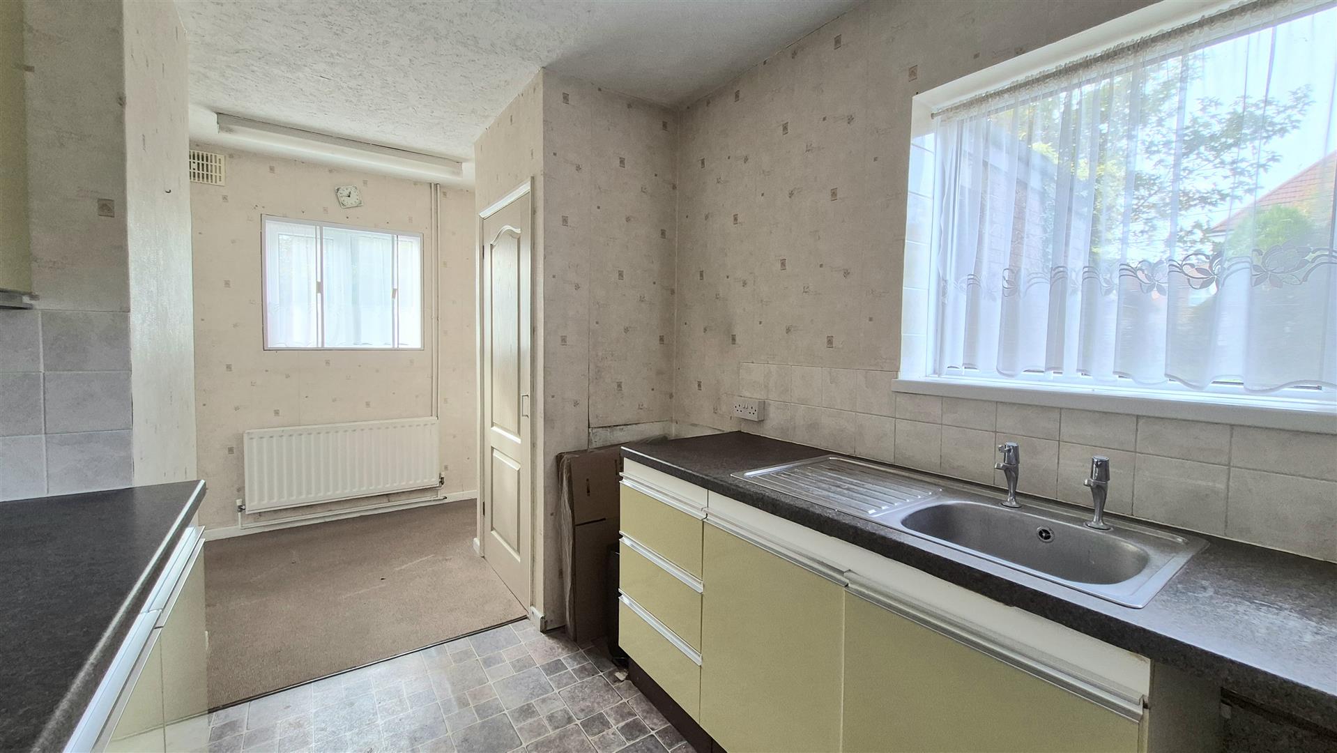 With a range of fitted units, stainless steel sink unit, space for appliances, pantry cupboard, door to rear garden.