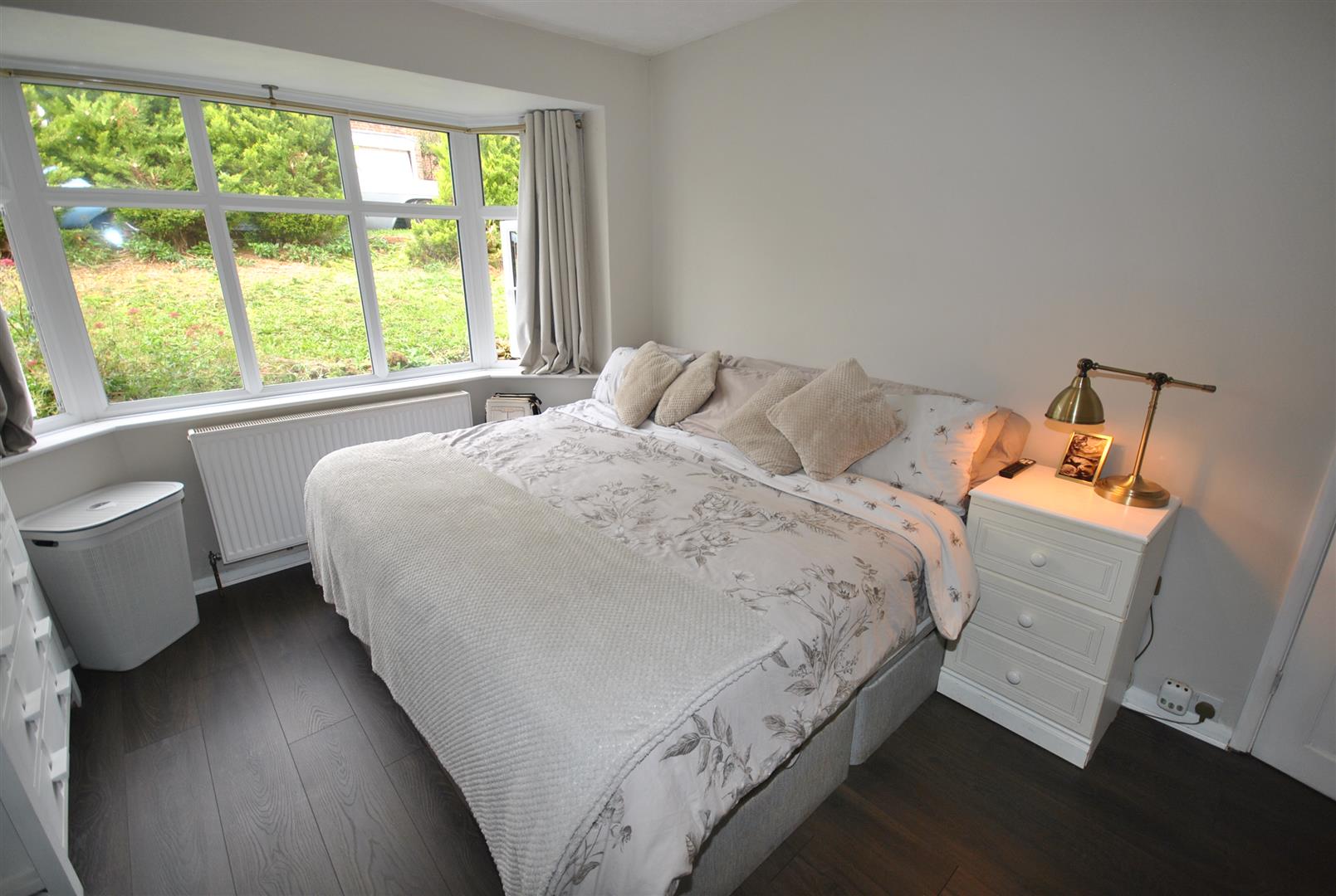 UPVC double glazed bay window to the front, wood flooring and radiator.