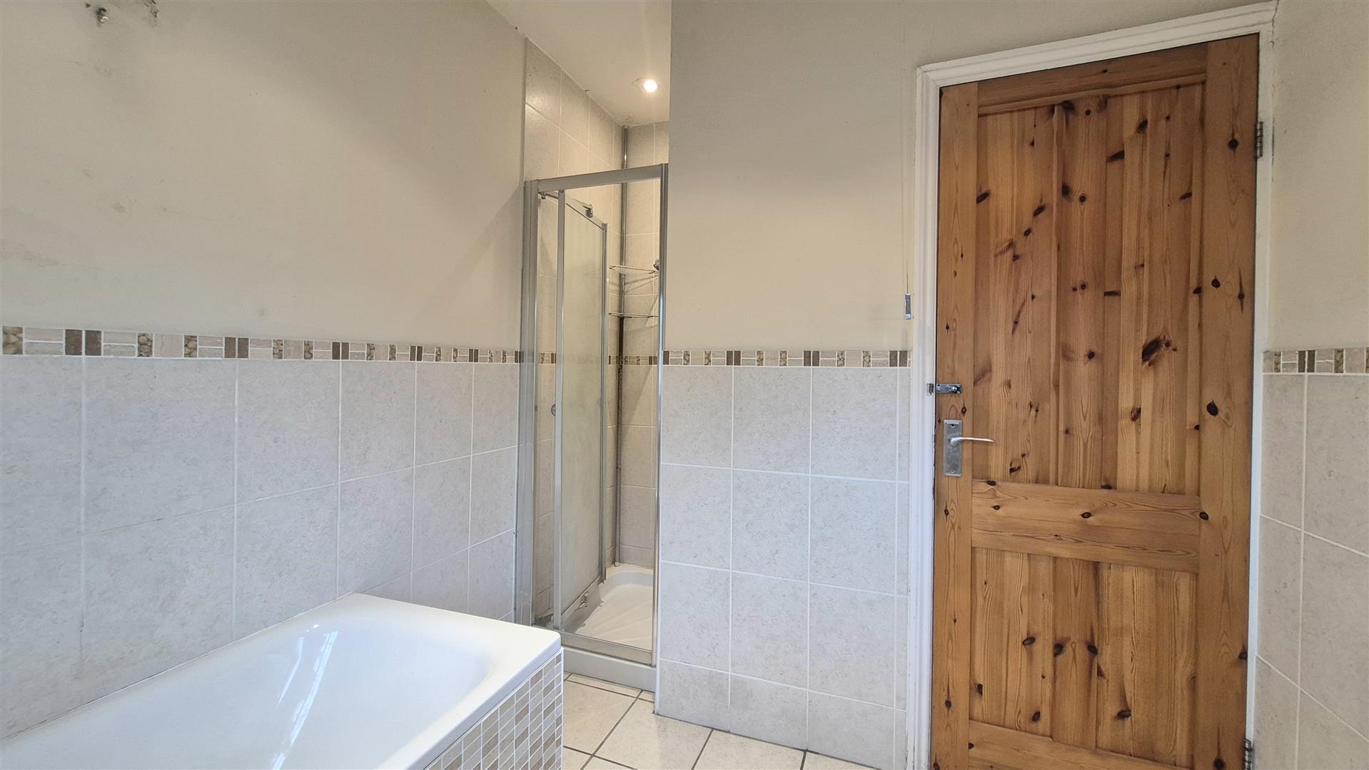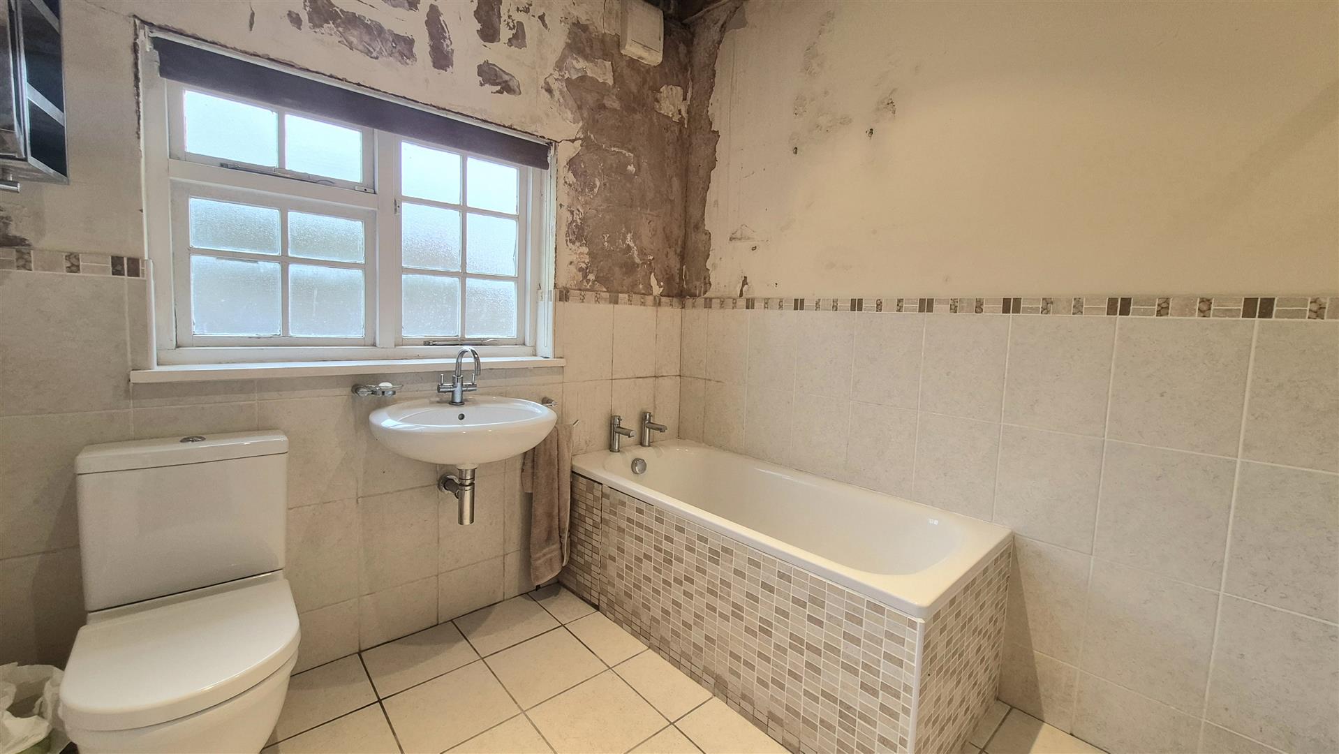 Window to rear, bath, sink, WC, shower cubicle, tiled to bath and shower area.