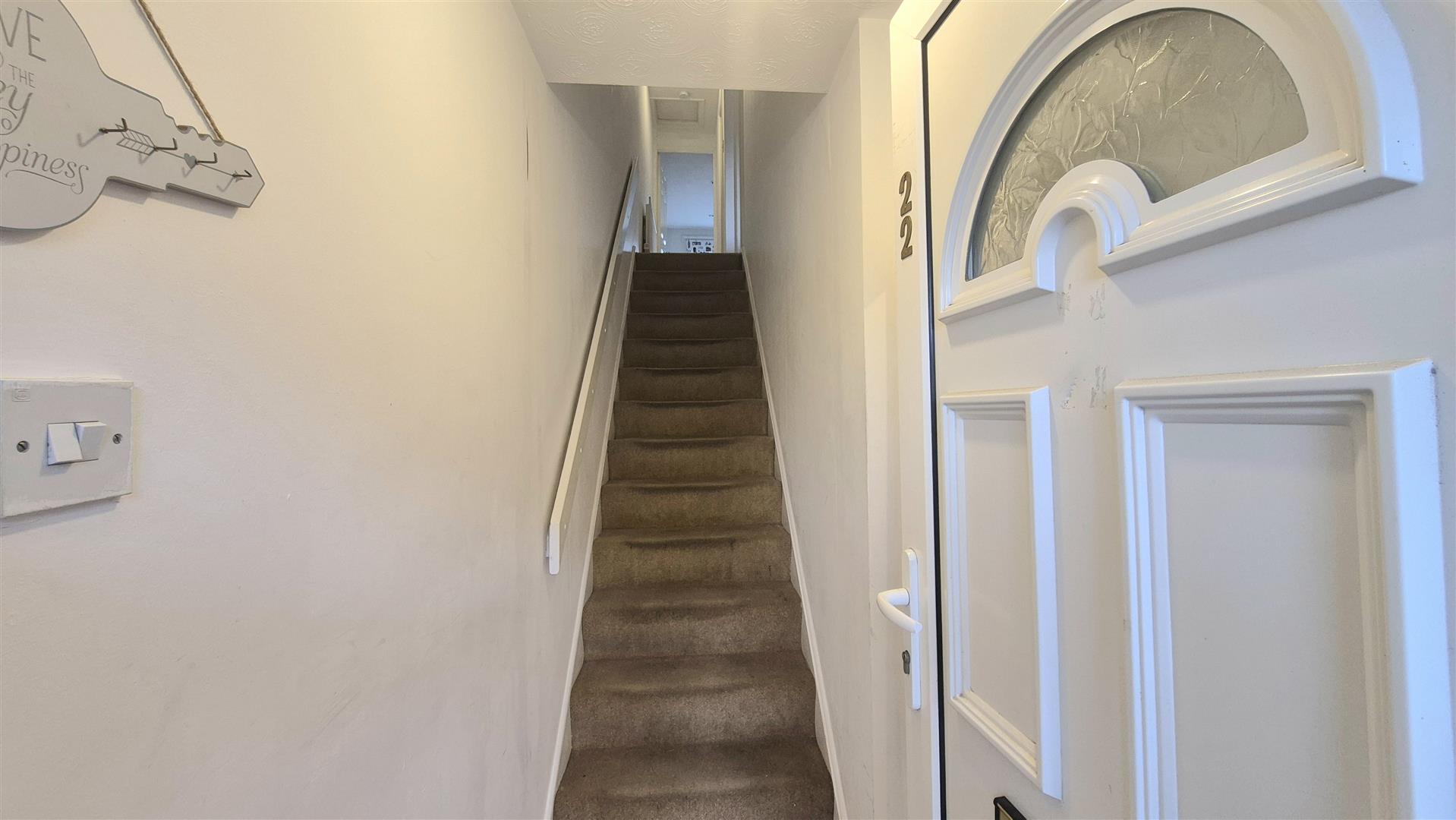 Double glazed front door, stairs to 1st floor and external store cupboard with gas and electric meters