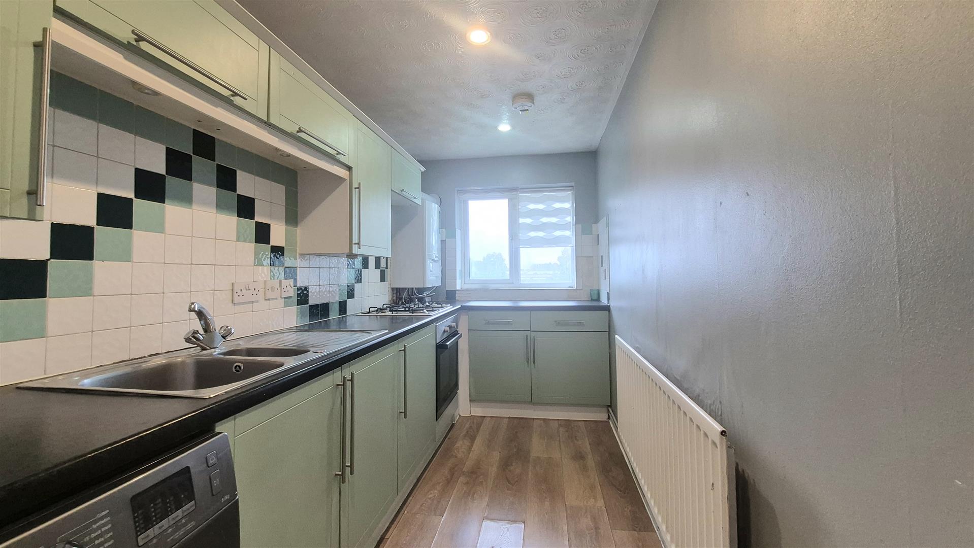 Double glazed window to rear, with a range of fitted wall and base units, stainless steel sink unit, space for appliances, tiled splashbacks, laminate flooring, wall mounted Vaillant gas boiler, radiator.