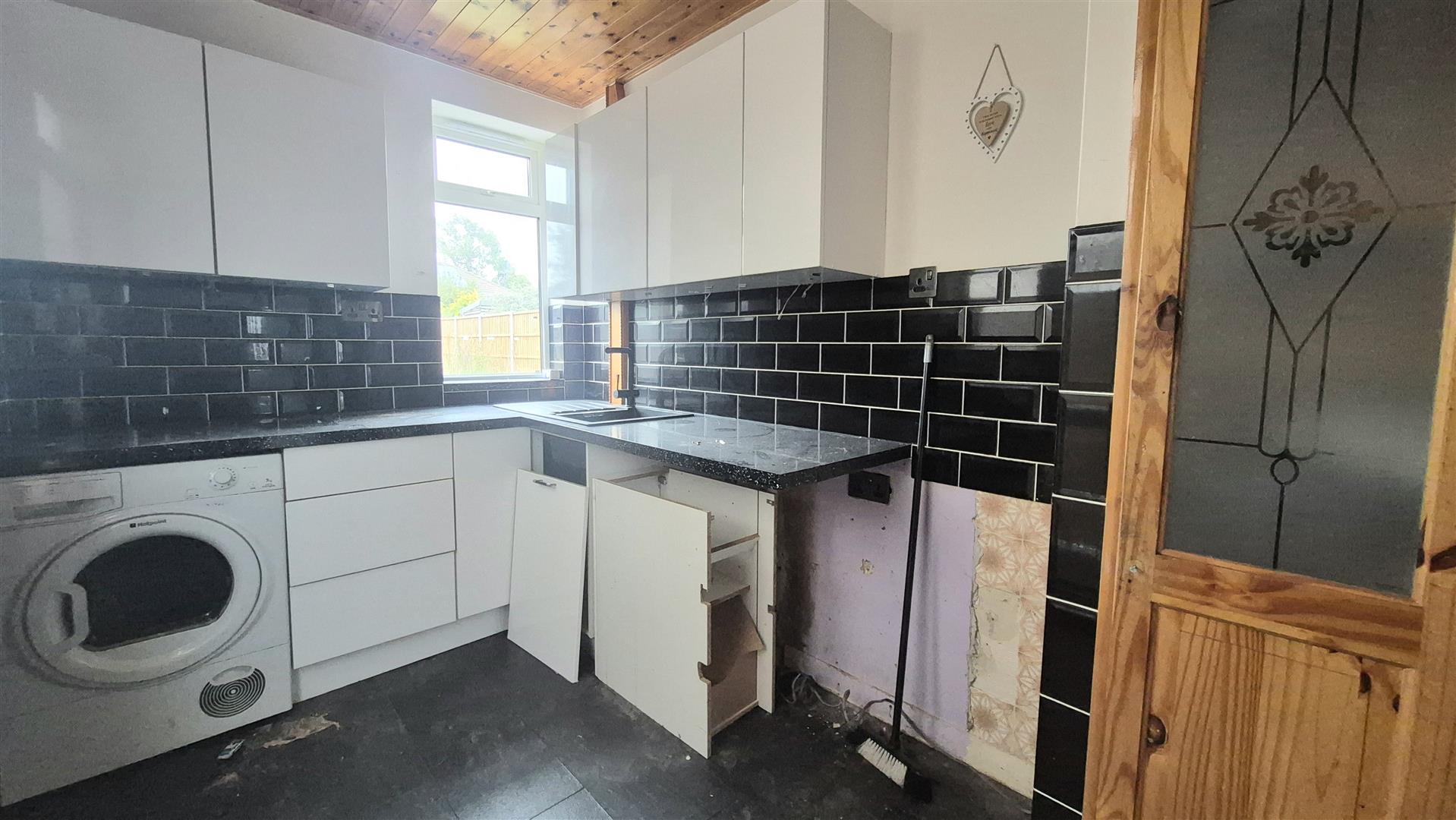 Windows to rear and side, door to garden/side access. Range of fitted units, space for appliances.